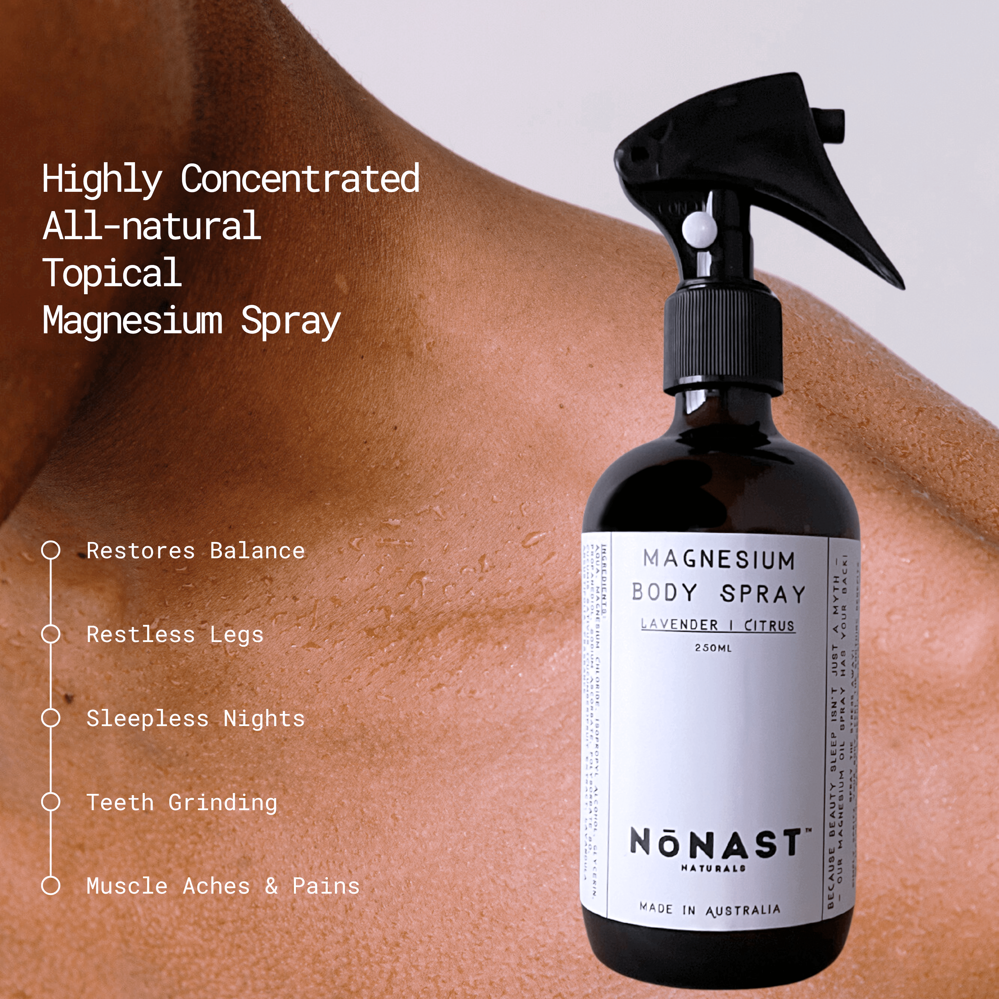 Loved for a reason — our cult-favourite topical magnesium spray is your daily ritual for calm, recovery, and deep rest. A lightweight, fast-absorbing Magnesium Spray designed to ease muscle tension, support recovery, and promote restful sleep. Infused with clean, potent magnesium chloride, it works through the skin to help you unwind, rebalance, and feel your best — morning or night. Ideal for use post-workout, before bed, or whenever your body needs a moment of care.